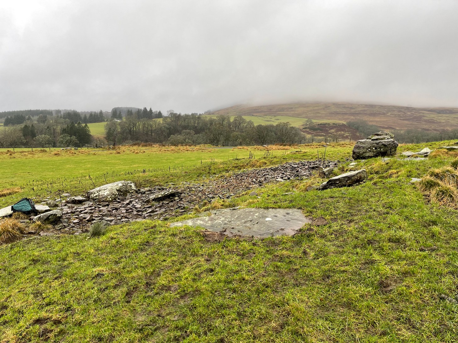 First described in the Object Name Book* of 1867 as being “the remains of a cairn in which D MacMillan of Glenbarr says a cist was found”, this prehistoric tomb was subsequently going to be destroyed in the 1950s by the farmer when local researchers Mr & Mrs J.G. Scott (1958) took to checking the place out before its demise. And it was a damn good job they did! The cairn still remains to this day—albeit in a very dilapidated state. The assistant editor of The Prehistoric Society journal, Ian Longworth (1959), wrote an account of the findings, telling: