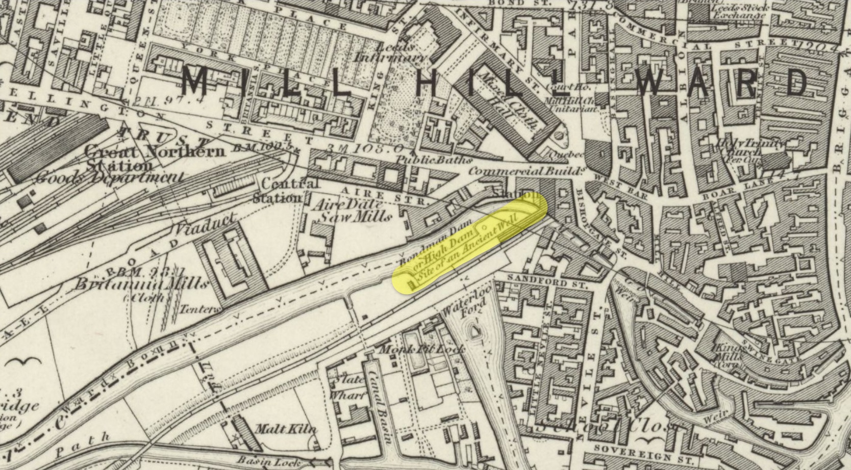 “the position of this well can be accurately determined: it was situated on sloping ground between Wellington Street and Aire Street, as clearly indicated on the 1847 (1850) OS 5ft to 1 mile (map).”