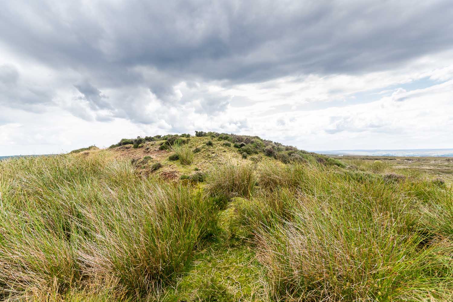 Along the A169 road that runs may miles from Whitby to Pickering, as you go through the small town of Sleights, the road gets steep for a mile or so, until you reach the moorland tops, where the road runs dead straight. After 1.2 miles (1.93km) along the straight road, a small minor road is to your right. Go along here for literally half-a-mile (0.8km) where you’ll see a small dirt-track on your right, with a locked gate. There’s room to park here. Walk straight onto the moor towards the large rounded mound about 200 yards northeast. That’s it!