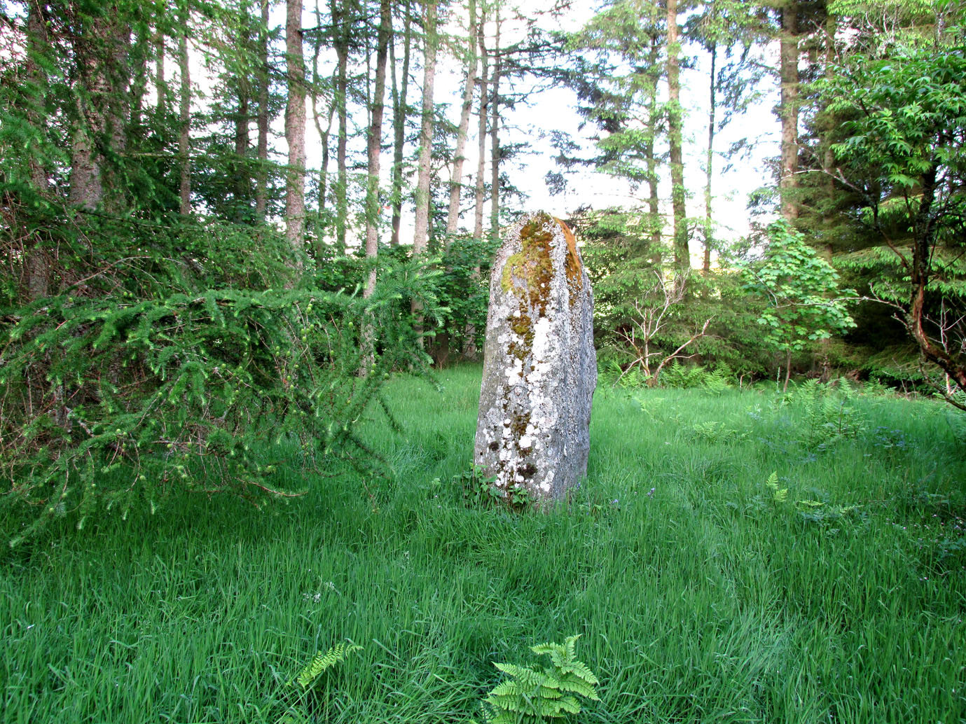 What seemed to be a fourth hut circle was covered in deep heather close to the cluster of three, but we need another visit here to work out whether this suspicion is correct or not. Much more certain is the existence, less then a hundred yards northwest of here, of a very distinct line of ancient walling, about a yard wide, suggesting that the hut circles were encircled by a much larger enclosed structure. I paced along this walling for 60 yards, whereafter it disappeared into the heather.