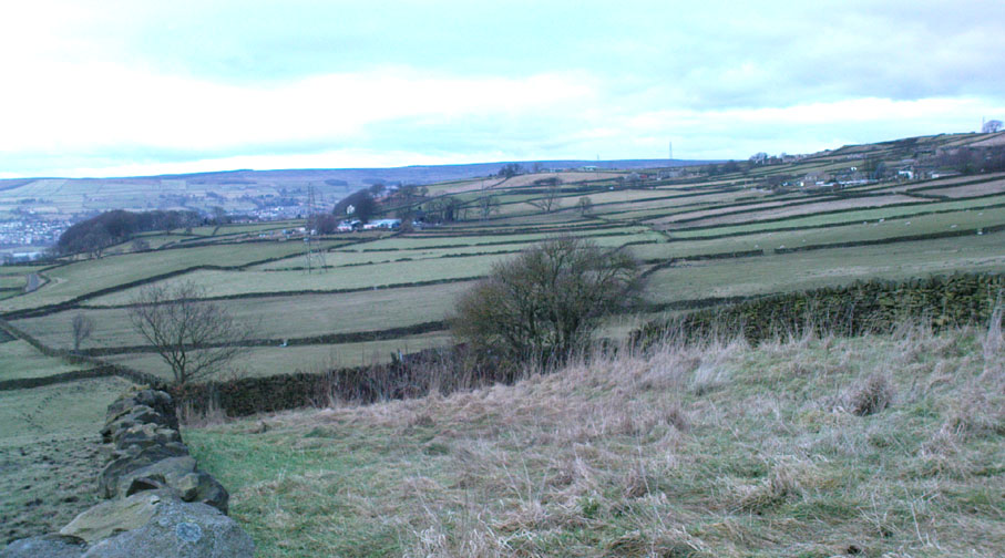 Various ways here. From Keighley, go up the A629 Halifax Road, first left after the Ingrow West train station, uphill; then turn right, and up the long, cobbled, zizaggy road past the little hamlet of Hainworth and uphill till you reach the solitary farmhouse of Goff Well Farm (where its friendly owners can sell you organic fresh eggs!). It’s the field just before here on your left (if you reach the Guide Inn pub further uphill by the crossroads, you’ve gone too far). Alternatively start at the Guide Inn pub and walk across the road and downhill till you reach the farm. It’s in the first field on the right just past it.