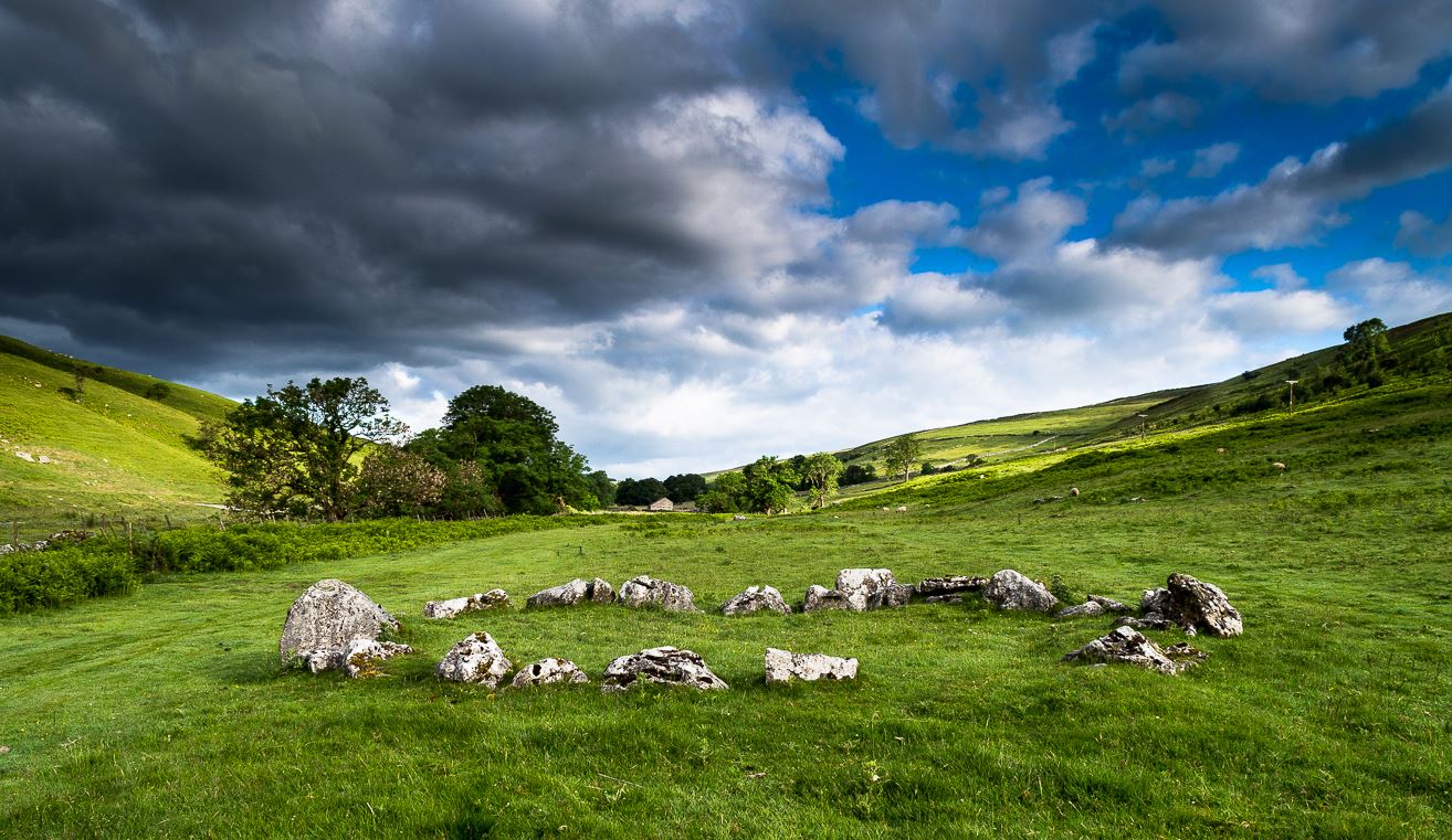 Just above the well-trod path that runs parallel with the usually shallow River Wharfe, this small and silent ring of stones rests in the idyllic host of Langstrothdale, deep in olde Yorkshire.  Tis a wonderful spot… Classed as a ‘stone circle’ for many a decade (even by the esteemed Aubrey Burl), this small but ancient ring shouldn’t really be held in the same category as our larger megalithic circles.  In truth, it looks more like some of the larger hut circles I’ve seen and uncovered down the decades—and it may well be that.  Indeed, even the archaeo’s aren’t in agreement as to what it is, with the general idea being that it is the remains of a ring cairn of some type, despite no human remains being found here.