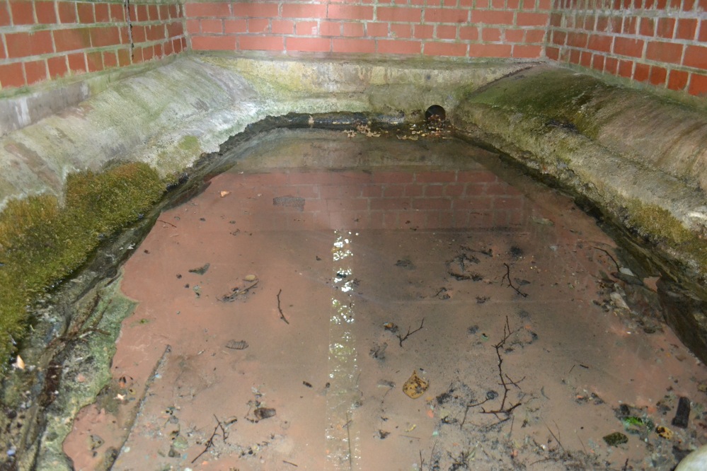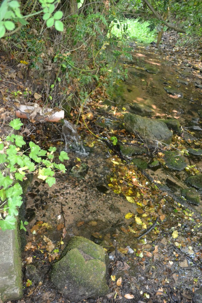 Peering between a gap however, this rather unpromising edifice reveals something more interesting. The brick chamber encloses an elliptical natural stone or possibly medieval basin, into which a copious flow enters and fills and then flows through a pipe into the brook below. Despite the rather ugly surrounds there is still something ancient and mysterious about this most well-known of Leicestershire sacred springs. The local farm, the Holywell Haw, still apparently uses the water and it is regularly checked by the University authorities. One hopes it can get a better cover. Surely the university could afford a metal grid more worthy of this venerable site.