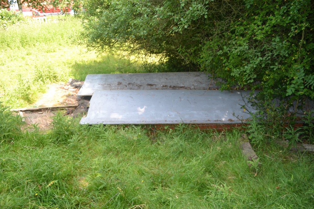 Despite a leaflet mentioning the well from the University (available as a pdf-file), it is a little reticent as regards to whether it can be visited. However, exploring around the back of the enormous Holywell complex, a small path passes some gas cylinders and then to a stile. No keep out signs are present so I assumed it was okay to jump over. There almost in front of me is a large brick chamber covered by two large fibre glass up turned boats. These appear to cover the well.