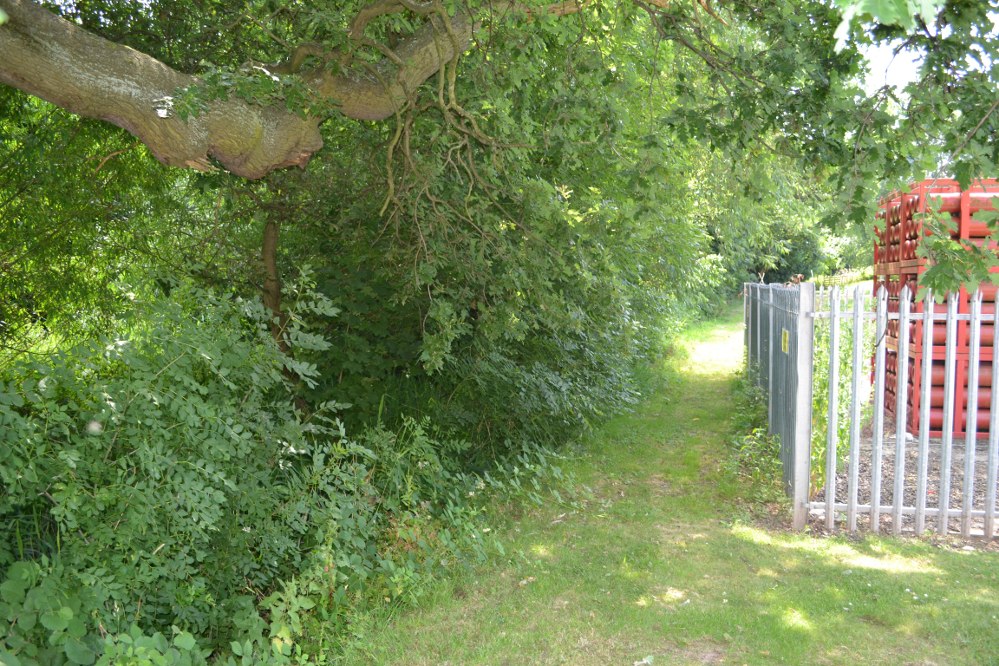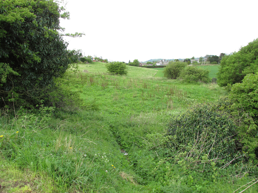 Entering Leuchars from Dundee or Newport go straight ahead through the roundabout; entering from Cupar or St.Andrews turn right at the roundabout, then up School Hill and bear left up the Pitlethie Road, then immediately past a long terrace of bungalows, turn left up an unmade road opposite the school, where you can park up. Walk down the track, noting the Castle Knowe Motte across the fields ahead and follow the track to the right, and there at the bottom of the slope, below modern housing, is the site of the Lady’s Well.