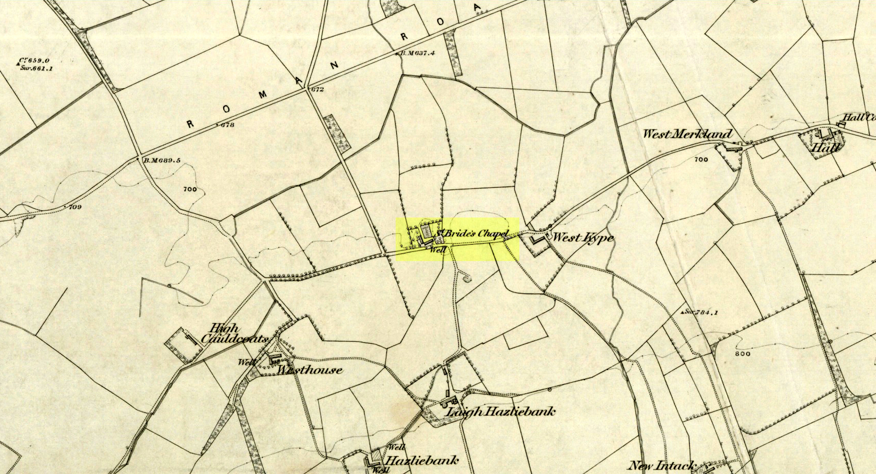 Shown on the 1864 OS map of the area as a ‘Well’ just at the front of St Bride’s Chapel—now a very pleasant old cottage—peasants and pilgrims would stop for both refreshment and ritual here as they walked down High Kype Road. Although the chapel was described in church records of January 1542 as being on the lands of Little Kype, close to the settlement of St Bride, there seems to be very little known about the history or traditions of the well. If anyone has further information on this site, please let us know.