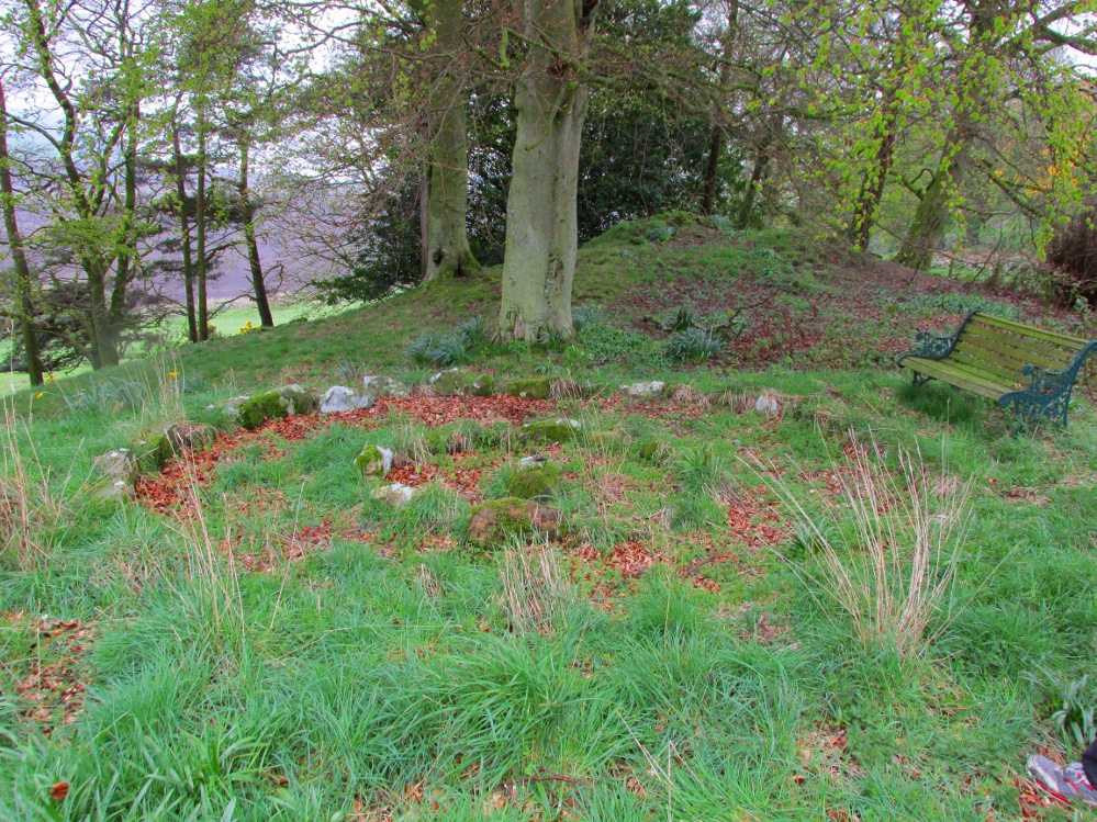 A truly fascinating and enigmatic arena for a host of reasons. The small and well-preserved ring of stones up the slope behind Creich Manse — looked after and recently cleared of covering vegetation by the present tenant — wasn’t born here, but originally lived more than a mile to the southwest, on the grounds of Luthrie House near the OS grid-reference NO 313 195. They were apparently under threat of being damaged and so, as James Taylor (1875) told, a “Mr Lawson got them removed, and placed them in a wood behind his manse in the very form in which they were found.”