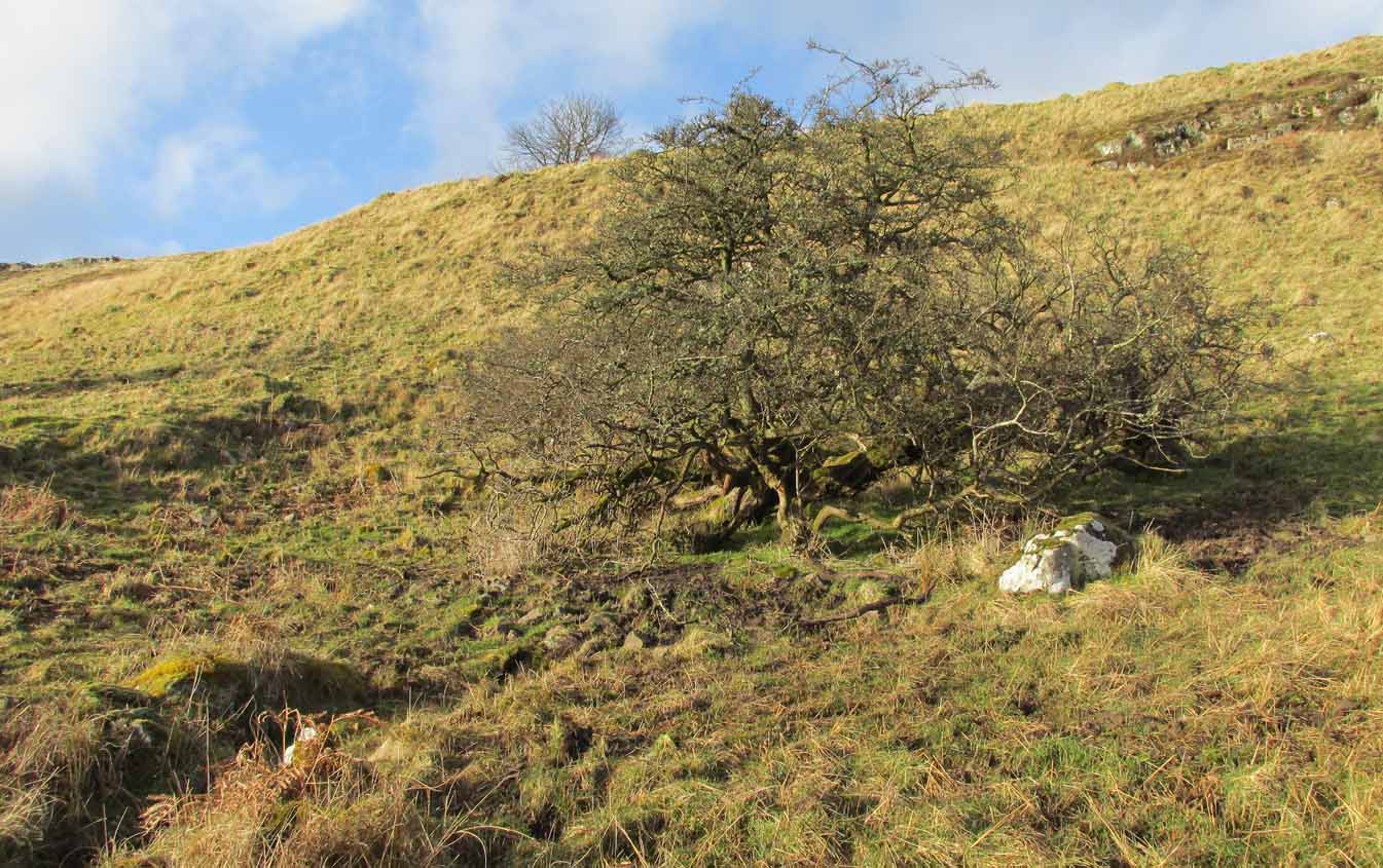 Not too tricky to locate, as long as you get onto the right footpath!  Take either road (both steep narrow and very bendy in places!) up from Logie on one side or Bridge of Allan on the other, towards Sheriffmuir and head to the Faerie or Highlandman’s Well.  About 150 yards before this, note the small car-park.  From here, go through the gate as if you’re walking to Dumyat, but 50 yards along the footpath it splits into two.  Take the lower right-hand path and keep walking for another 600 yards until you see a large worn hawthorn tree on your left, with boggy land just in front of it that runs to the path you’re walking on.  That’s it!
