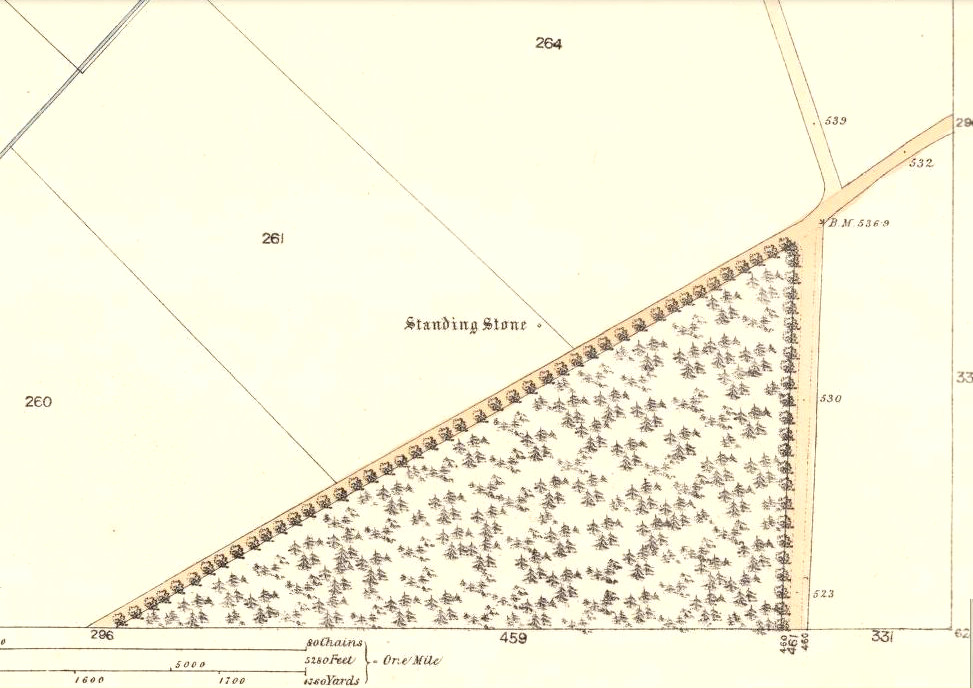 This is a curious site on several levels—not least, that its definition as a ‘stone circle’ is a fragile one; although to be honest, we do find here a large unfinished arc of stones in what looks like either an unfinished ring, or a deliberately constructed large arc. But you won’t find it in the standard megalithic gazetteers of Burl, Barnatt or Thom as it was only relocated in the 1980s by local researchers Sherriff and MacKnight. (1985) They didn’t have much to say about it either, simply telling that they’d found,
