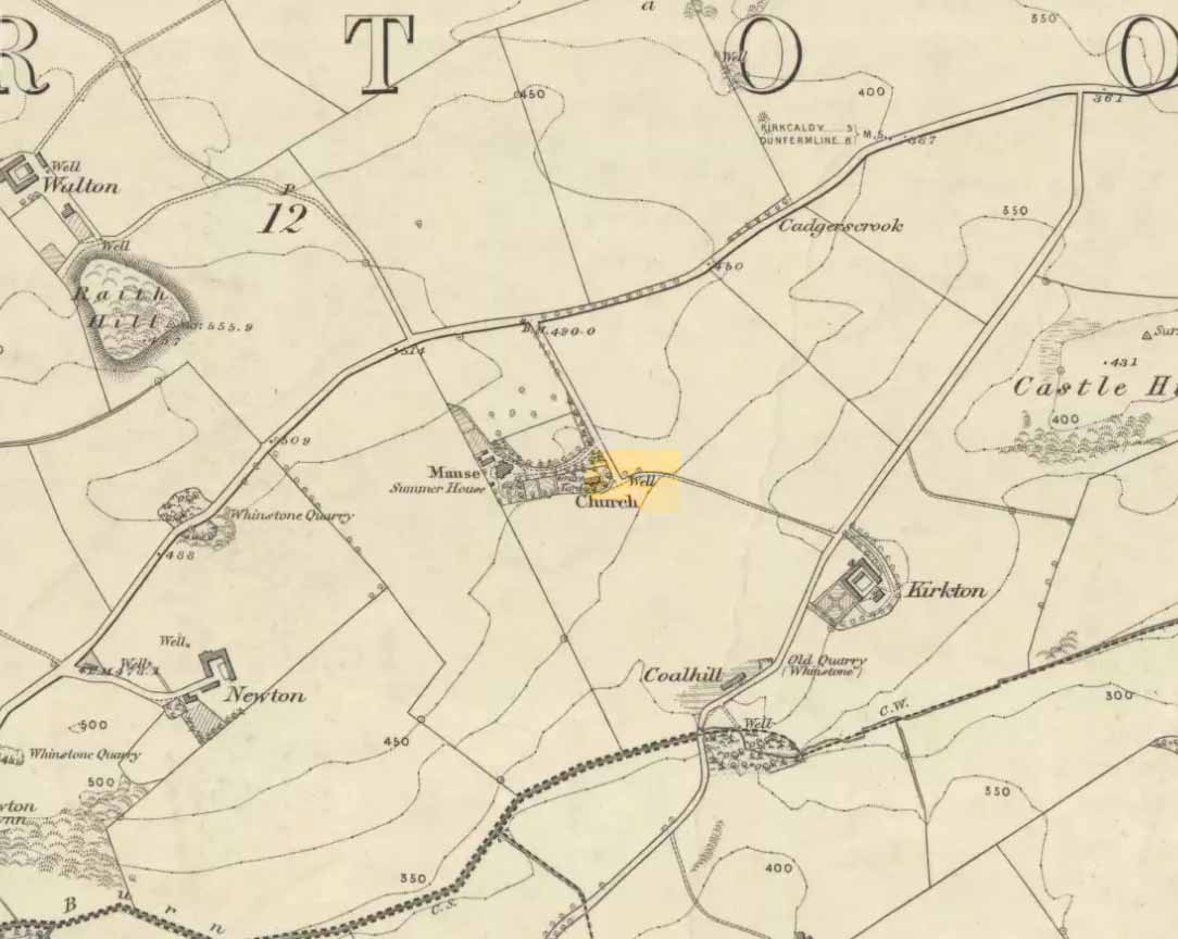On the more south-side of Kirkcaldy, head for the roundabout at the meeting of the A910, B925 and B9157, heading out west along the Auchtertool road; but just 60-70 yards past the roundabout, take the first right along Raith Drive. Wibble along here for a few hundred yards until you reach Raith Gardens. Walk down here for 50 yards and cross onto to the grasses opposite where a path runs parallel with a large old stone wall. Barely 2 feet above ground level, keep yer eyes on the walling!