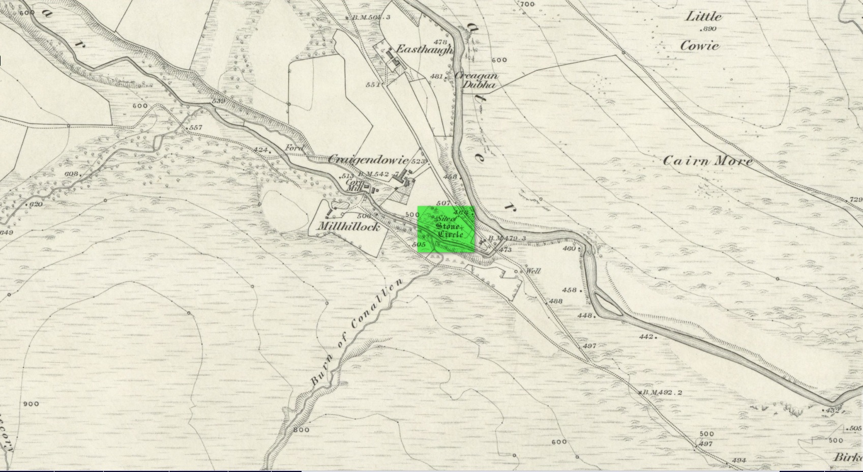 Stone Circle (destroyed): OS Grid Reference – NO 5414 6935