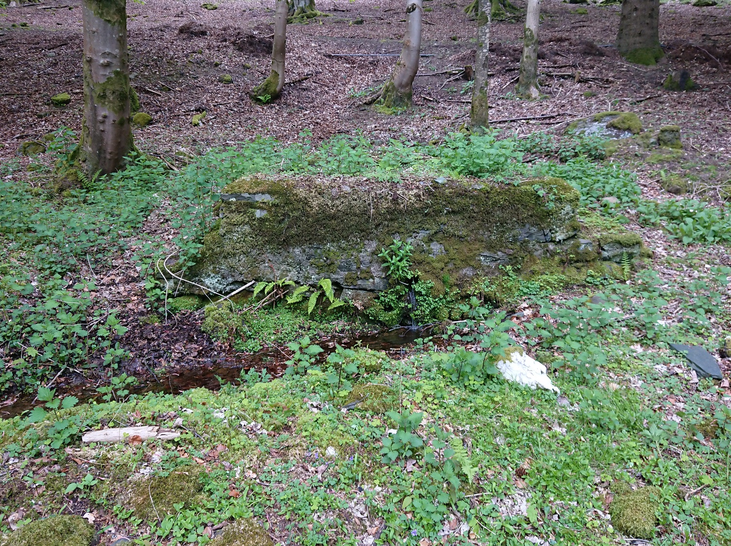 Miles to the winding north of Kirriemuir, in the depth of the olde mountains, this clear spring of iron-bearing water (still fresh and drinkable) was, earlier in the 20th century, covered over by someone-or-other and surrounded by straight slabs of stone. The waters were maintained however, by the builders who cut a small hole into the moss-embolded rock allowing this pure water to still run freely for all to use…
