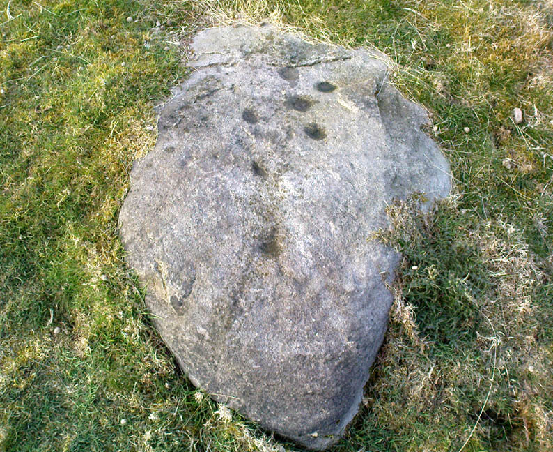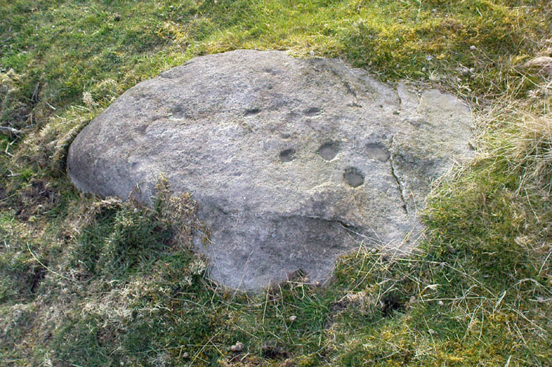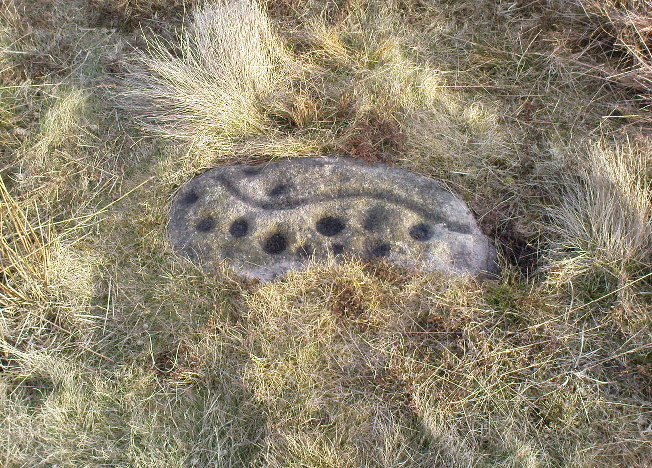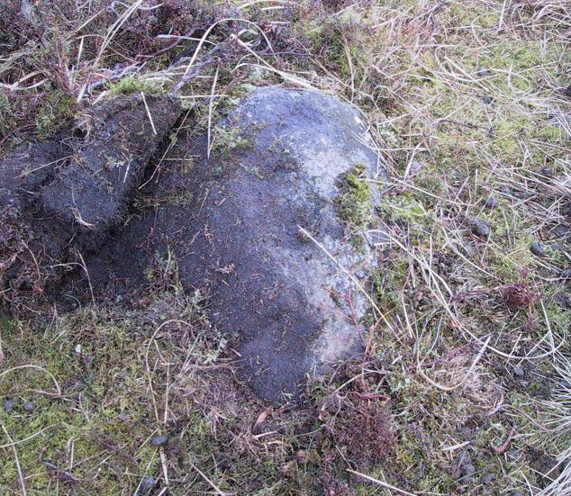 Like I say, we unfortunately couldn’t get a decent image of this site cos the vegetation was already covering it up. So if you wanna see it, gerrup there soon after the heather burning’s been done here — otherwise it’s gonna be at least another year before you getta chance to see anything. In Richard Stroud’s photo here, you’re looking at the bottom curve of the enclosure. You can just make out the line of walling near the centre of the picture, and two-thirds the way to the right you can see the enclosure wall curve closer to the bottom of the photo. (the site obviously requires a much better assessment from someone far more competent than me!)