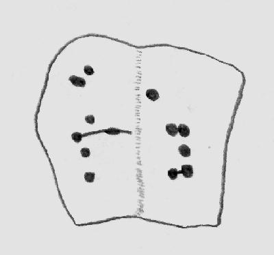 This is a previously undiscovered prehistoric settlement, enclosure, or something along those lines! We came across it in April 2005 and is found amidst the mixed heather and bracken and has a scattering of small stones, as if in the wake of a dried stream from bygone times. But whatever stream might once have been here, it’s long since fallen back to Earth — but at a point where a few rushes (Juncus conglomeratus) can be seen we find the aged remains of a large oval enclosure.