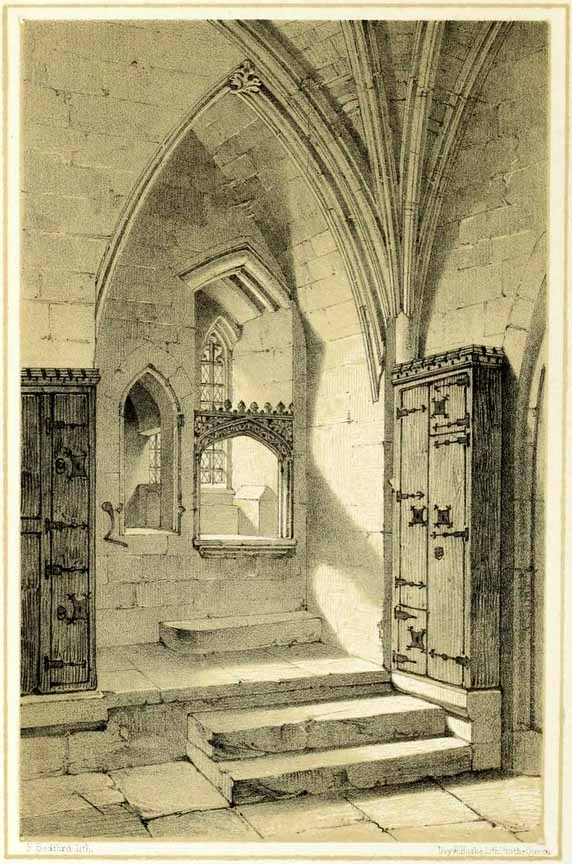 In Mr Goole’s (1850) survey of York Minster, his architectural illustration of the building showed that the water from the well had been brought up onto the ground floor, on the southeast side of the inner cathedral building in the easternmost vestry, and named as St Peter’s Pump.  This is illustrated in the 1850 drawing above-left.