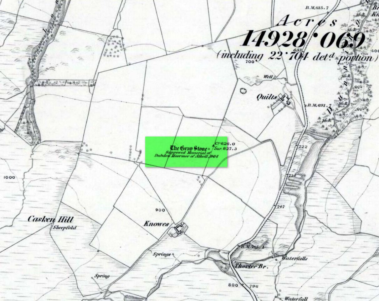 Shown on the earliest Ordnance Survey map of the area, the name of the stone is somewhat of a puzzle, for in a lot of cases ‘gray’ stones are found on local boundary lines—indeed, the name gray stone and boundary stone are interchangeable in many cases—yet the nearest boundary from here is some distance to the east.  It may simply relate to the colour of the rock (although this is unlikely).  Whatever its reason, it’s an impressive stone and is well worth checking out!