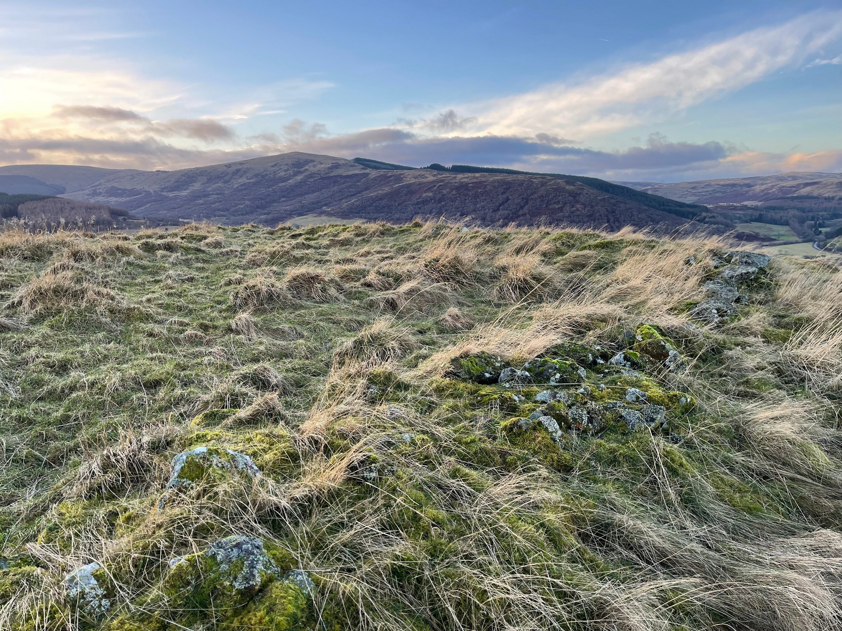 Curiously this site has had little said about it in archaeo-tomes and to my knowledge, no excavations have happened here.  Incredibly, the place wasn’t even recognised as a prehistoric site in official records until the Royal Commission (1963) told of it being “discovered during the survey of marginal lands (1956-58)”!  Its very name derives from the word dun, or fort (Watson 1995) and as the place-name writer found out, it was first mentioned in 1542, as Donehill, and many times thereafter in various documents.