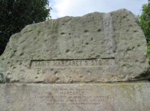 “The large stone here is associated with St Margaret and was visited by women who hoped to conceive or sought a successful birth. The eight-foot high stone is said to mark the resting place of St Margaret when she journeyed between Queensferry and Dunfermline. Margaret had eight successful pregnancies and probably needed to rest quite a few times on her travels!”