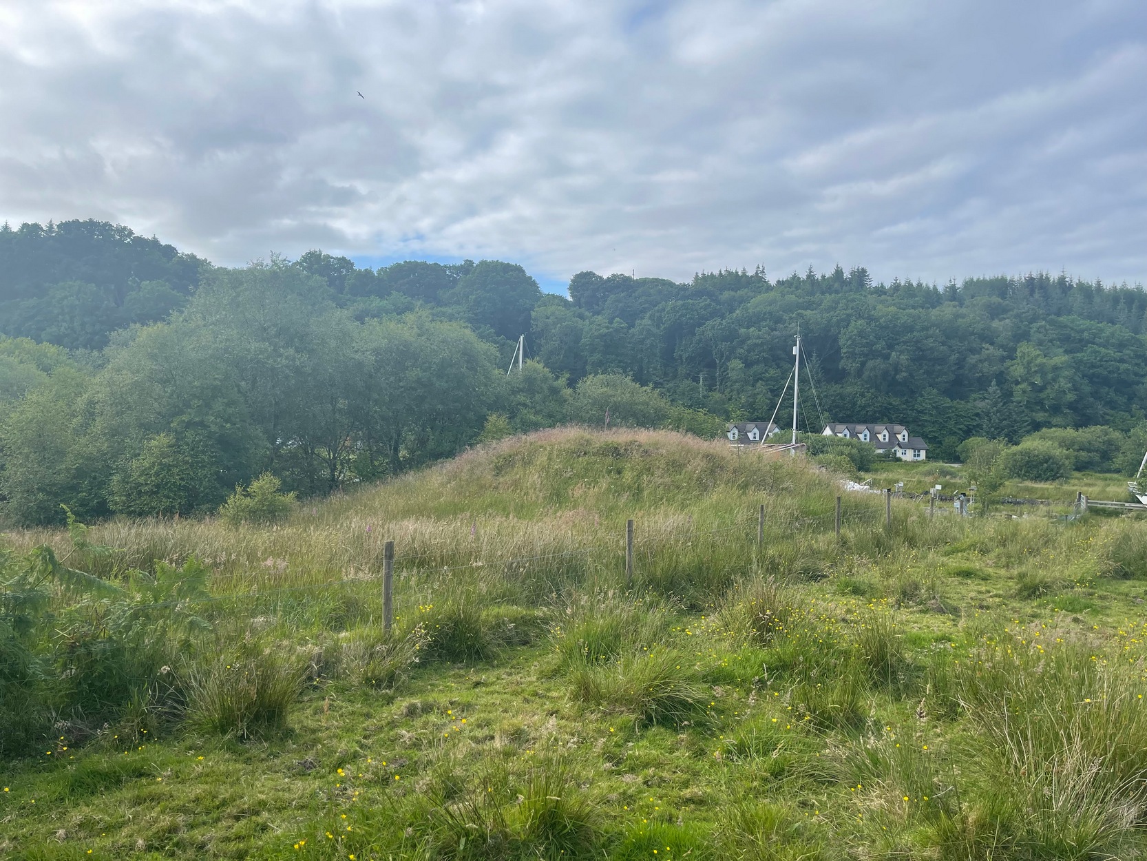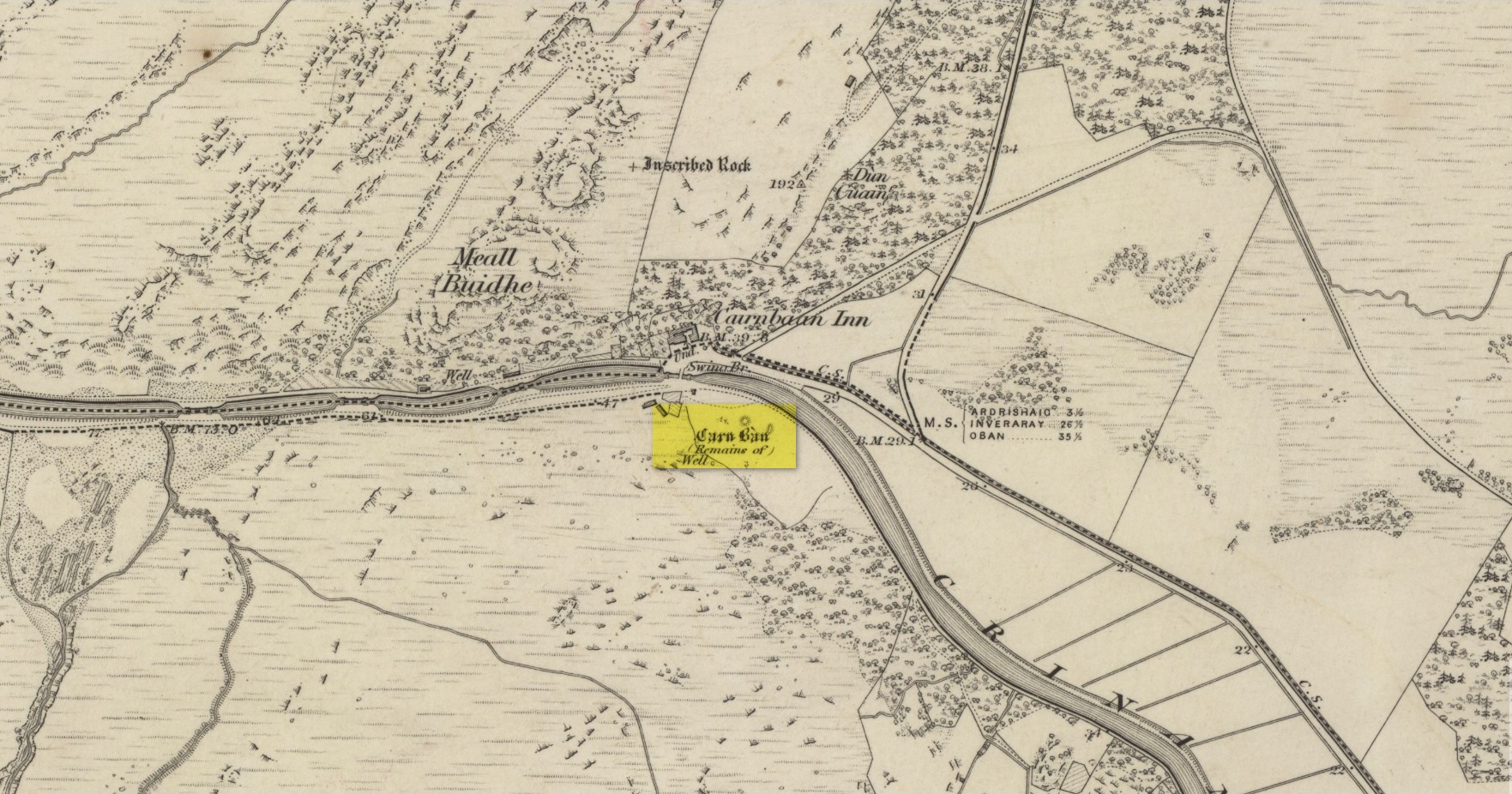 First described in the Object Name Book* of 1867 as being “the remains of a cairn in which D MacMillan of Glenbarr says a cist was found”, this prehistoric tomb was subsequently going to be destroyed in the 1950s by the farmer when local researchers Mr & Mrs J.G. Scott (1958) took to checking the place out before its demise.  And it was a damn good job they did!  The cairn still remains to this day—albeit in a very dilapidated state.  The assistant editor of The Prehistoric Society journal, Ian Longworth (1959), wrote an account of the findings, telling: