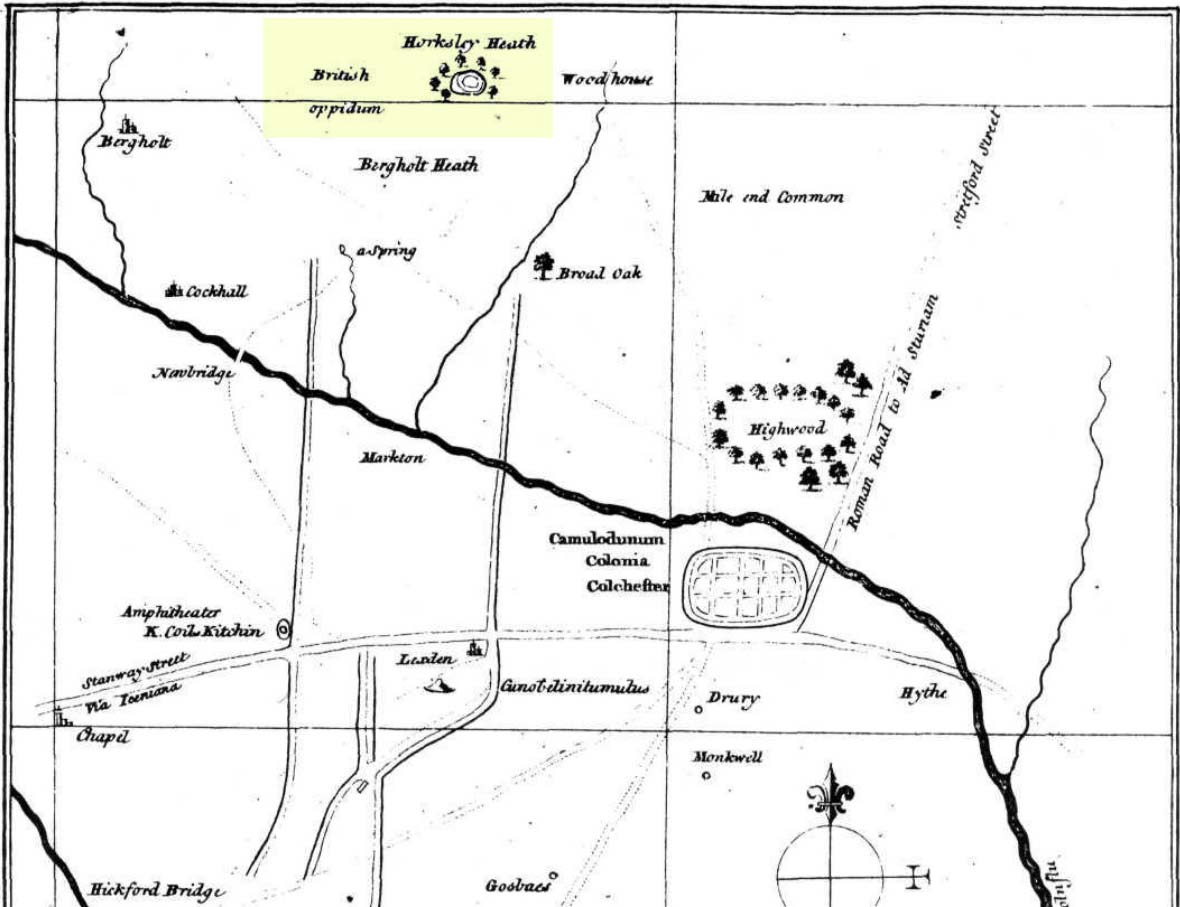 This prehistoric site was a giant – a huge colossus of an ‘enclosure’, a ‘settlement’, a ‘camp’—call-it-what-you-will. More than a mile in circumference and with an internal area of 48 acres (big enough to hold 37 football fields!), archaeologist Pamela Greenwood (1989) told us, not only that it was “the largest recorded hillfort in Essex”, but that it compared in size with the immensity of Maiden Castle in Dorset! Yet despite it being cited by the Oxford Archaeology report of Jonathan Millward (2016) as “the most significant archaeological site within the Borough” from the Iron Age period, it has fallen prey to the thoughtless actions of the self-righteous Industrialists who, as usual, have completely destroyed it. It was already in a “bad” state when the Royal Commission lads visited here around 1916, saying how it was “in some danger of destruction.” Thankfully, in earlier centuries, we did have more civilized and educated people who seemed proud to describe what there was of their local history.
