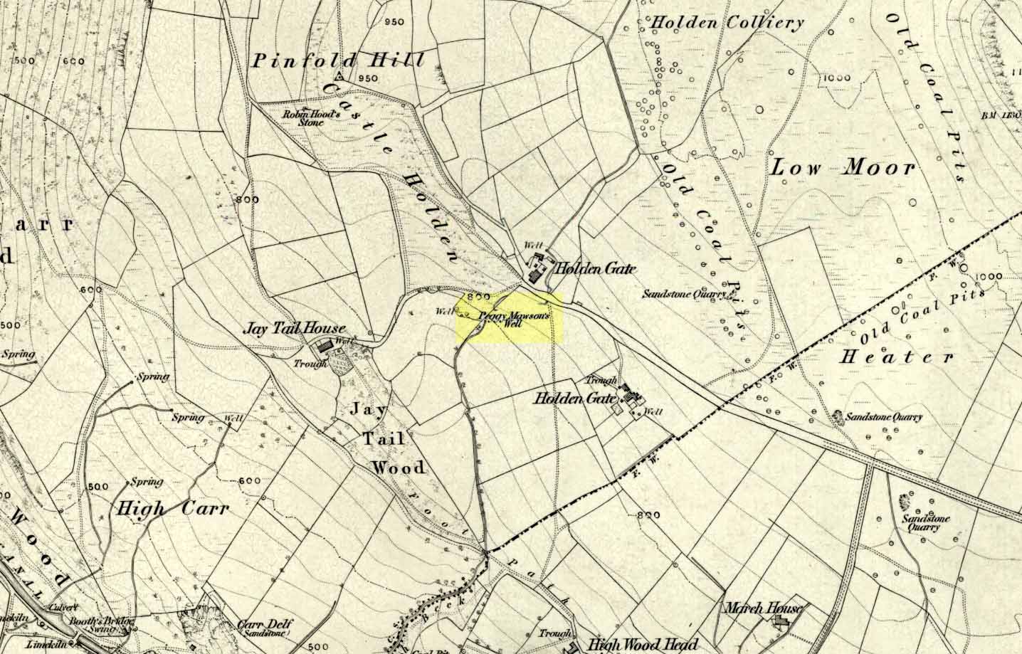 Shown on the first OS-map as ‘Peggy Mawson’s Well,’ little else seems to known of this place; though it obviously got its name after the local lady, Peggy Mawson. I can find no further information about this lady, nor why the site was named after her. Any help here would be hugely appreciated!