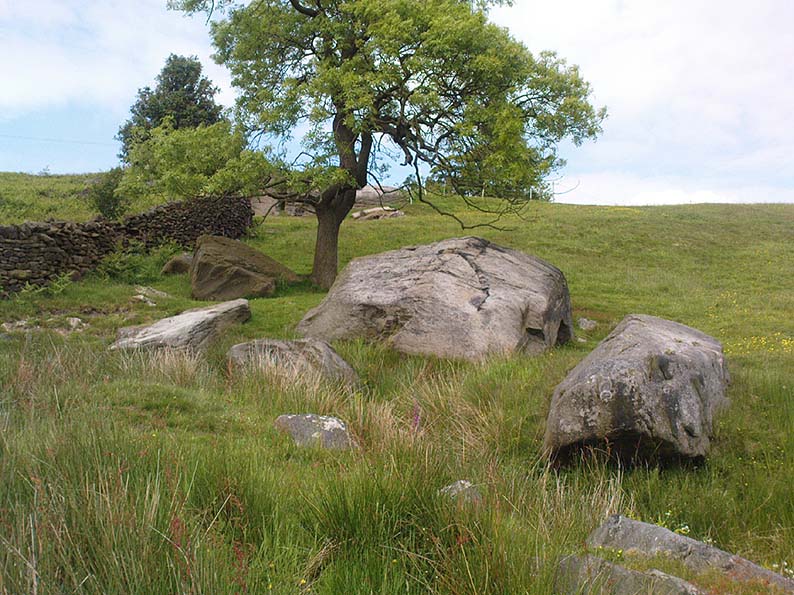 From Bingley, take the B6429 road up to Harden. After going up the wooded winding road for a few hundred yards, stop where it levels out. Cross onto the right-hand side of the road and walk up the slope a little, veering to your right. You’ll notice a small disused building just off the roadside, in overgrowth, with a pool of water. You need to be about 100 yards up the slope above it!