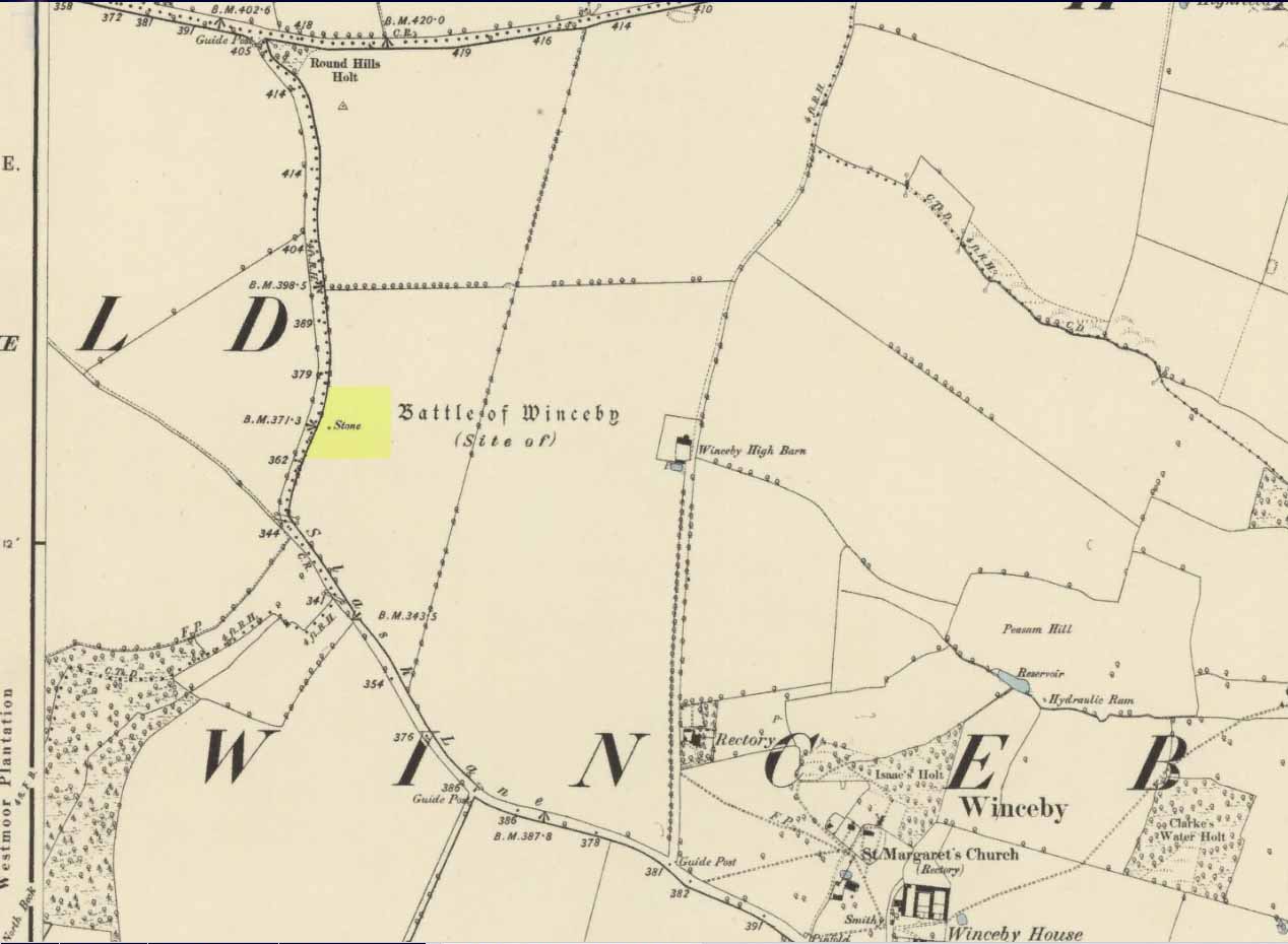 There is no specific archaeological information about this stone. However, we must take note of the so-called “devil’s footprint” that was on the boulder. In some parts of the UK, some devilish and other mythic footprints on stone are prehistoric cup-markings; but we have no idea whether this impression was such a carving or—more probably in this case—Nature’s handiwork. The field in which the stone existed was said to be the place where the so-called Battle of Winceby occurred.