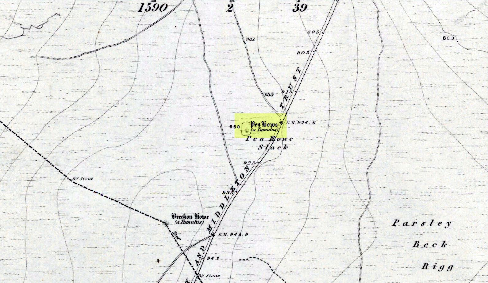 Rising barely three feet above ground level, this is slightly smaller than Pen Howe (1), being just 13 yards across; and there is no indication that it has ever been dug into.