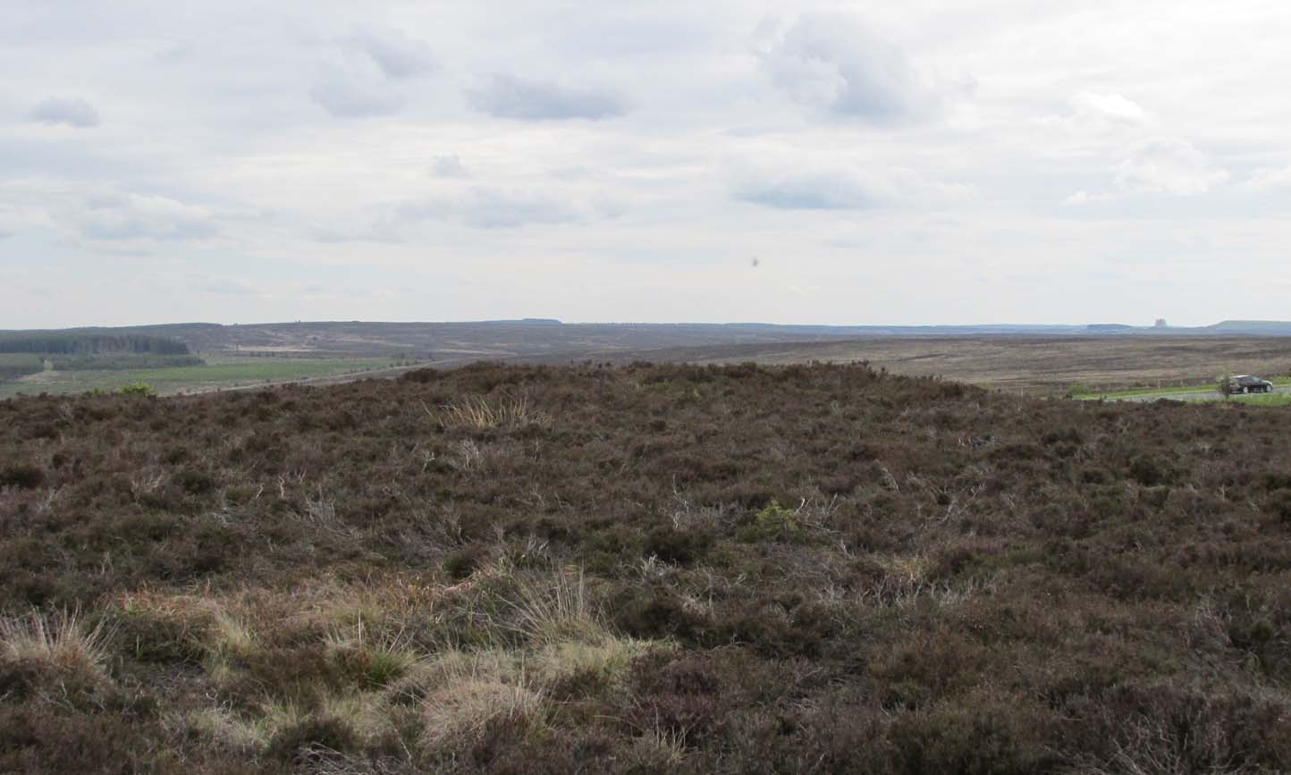 Prehistoric companion to the more pronounced Pen Howe (1) Bronze Age cairn just 20 yards to the west, this overgrown tumulus is hardly noticeable when the heather’s deep and is probably only of interest to dedicated antiquarians and geomancers. Its position in the landscape, whilst not as prominent as its companion and the nearby Breckon Howe, would still have been important to its builders and the relative proximity of the two tombs may imply a continuity of tribal companionship in the Land of the Dead. But hey! – that’s just a silly idea of mine! 🙂