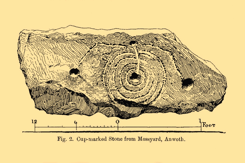 Described during a meeting of the Inverness Scientific Society by a Dr Grigor in a short presentation on cup-marked stones at Nairn in July 1884, the matter of some faint traditions concerning a tiny number of cup and ring stones in Scotland was mentioned, and,