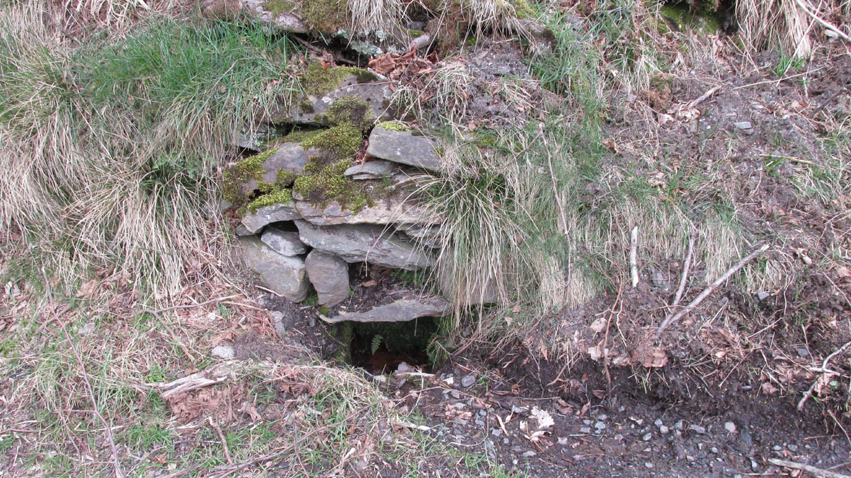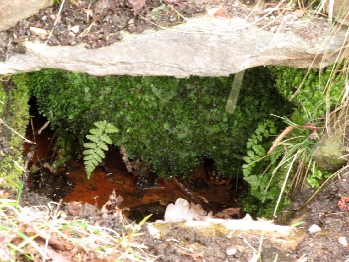The waters in this small roadside well-house actually emerge some 50 yards up the steep hillside (recently deforested) and in parts have that distinct oily surface that typifies chalybeates, or iron-bearing springs – which this site is an example of. Its medicinal properties would help to people with anaemia; to heal women just after childbirth; to aid those who’d been injured and lost blood; as well as to fortify the blood and stimulate the system.