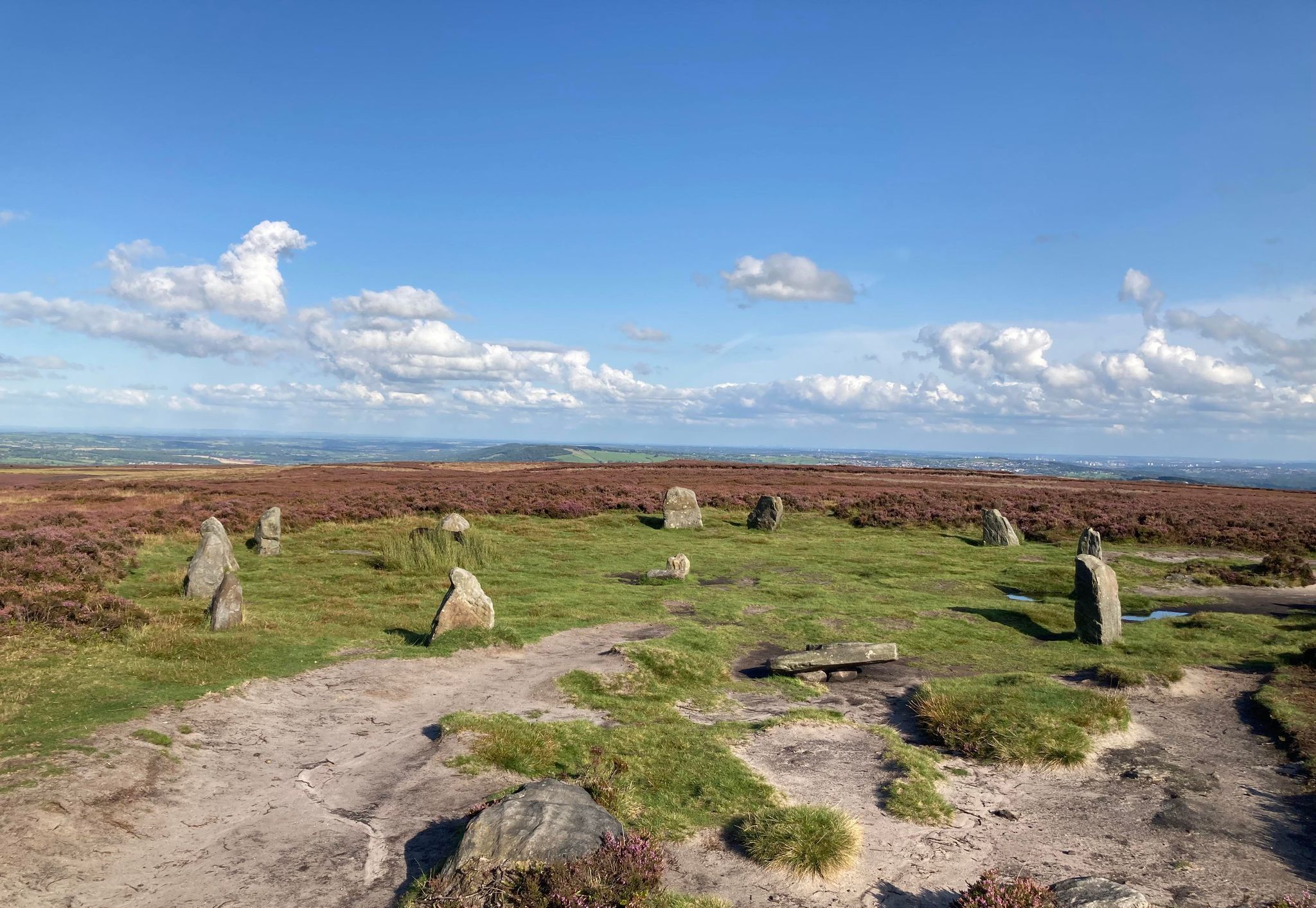 There are many ways of reaching the Apostles, but I’ll stick to describing the two commonest routes for those of you who wanna find it. The first is the route out of Ilkley. Get to the White Wells (white building nestled on t’ edge of t’ moors) – ask a local if you don’t know where it is. From here follow the path up past the Wells, up the stepped-cliffs, and once on top where there’s a crossing of paths, keep straight forward onto the moors for about a mile. Once you’re on the very top of the moors, keep your eyes peeled to the left of the footpath and you’ll see it! From the other, southern-side of the moor, start from Dick Hudson’s pub, cross the road and go up the footpath onto the moor. Now, just keep walking for a mile or so, until the circle appears on the right-hand side of the footpath right near the very top of the route.