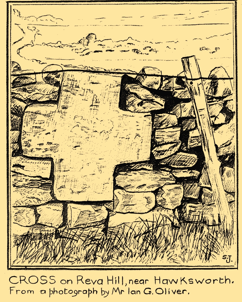 “Mrs Turner Greenwood….tells me that her mother, who, if living, would be in her nineties, lived at Gaping Goose Farm on the western side of Reva Hill… Mrs Greenwood’s father.. .remembered the cross erected on this hill, and related seeing the roads black with people climbing to it from Otley and Bingley, for the market held there.”