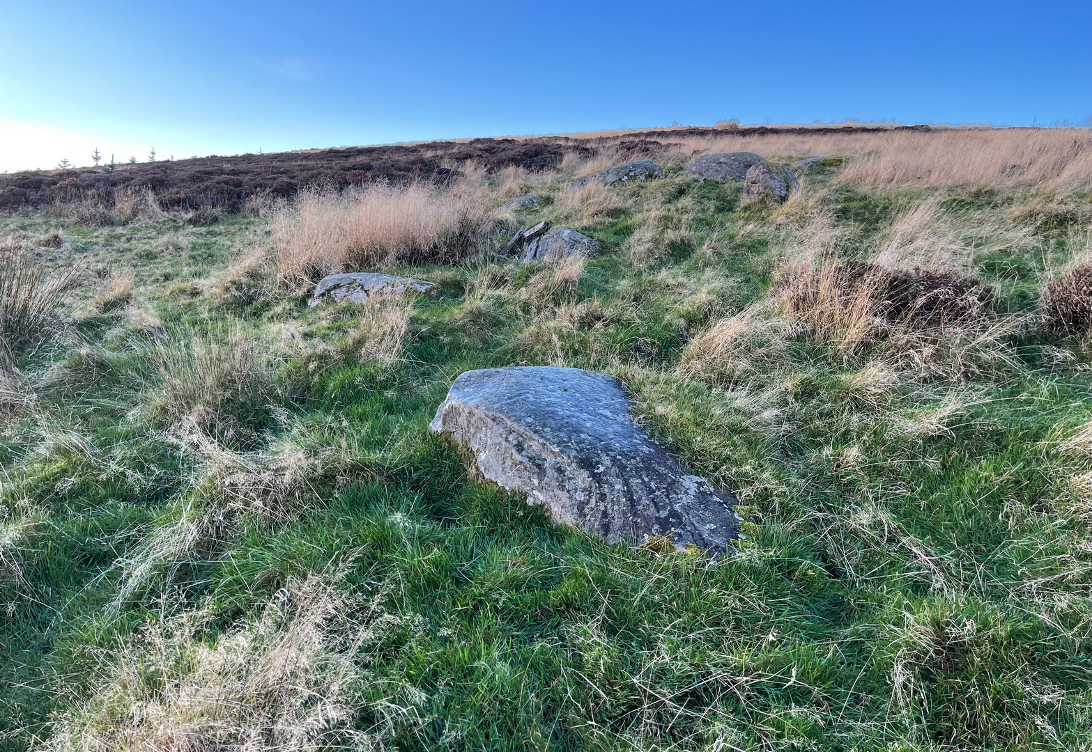 Shown on the first Ordnance Survey map of the area in 1867, its bulky 6½-foot-tall body stands all alone on this relatively flat plain, with open views to the east, south and west. It gave me the distinct impression that it was once part of a larger megalithic complex, but I can find no additional evidence to substantiate this. Call it a gut-feeling if you will. Intriguingly, the closest site to this are two standing stones just out of view literally ⅔-mile (1.07km) to the northeast, aligned perfectly to the Witch’s Stone! Most odd…