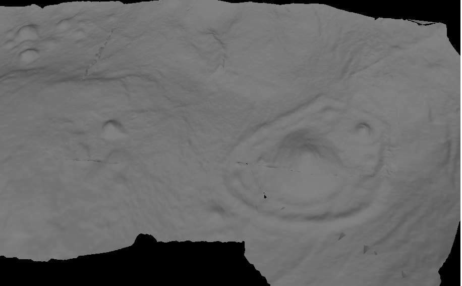 To those of you who like the new computer images of cup-and-rings, the three below are samples from a number of such images done after the stone had been discovered. Intriguingly, the long line running between the cluster of cups to the large cup-and-ring doesn’t show up too well; but the barely perceptible line running out, zigzag-fashion, from the large central cup-and-ring, shows up much clearer than when looking with the naked eye.