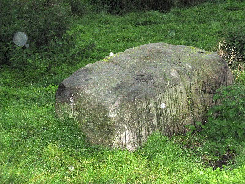 This small cup-marked stone was rediscovered by Danny Tiernan in the late afternoon of Thursday, August 18, 2011, just as the heavens opened and the rains poured down! With at least one well-defined cup-mark and another two near the edge of the stone where the grasses had grown, this stone probably needs another look at it, as there may be more beneath the surface, much like when we first found at Morphing Stone.