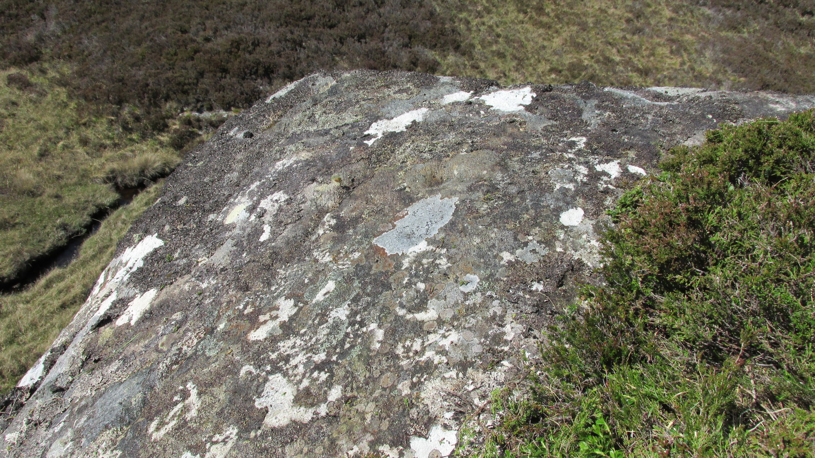On its northern face we see a large oval hollow, an inch or so deep throughout, that has all the hallmarks of being a primitive face. There is a tradition of such a rock “face” carving somewhere close by, which seems to be lost—and this would seem to be culprit! If you visit the place, let us know what you think!