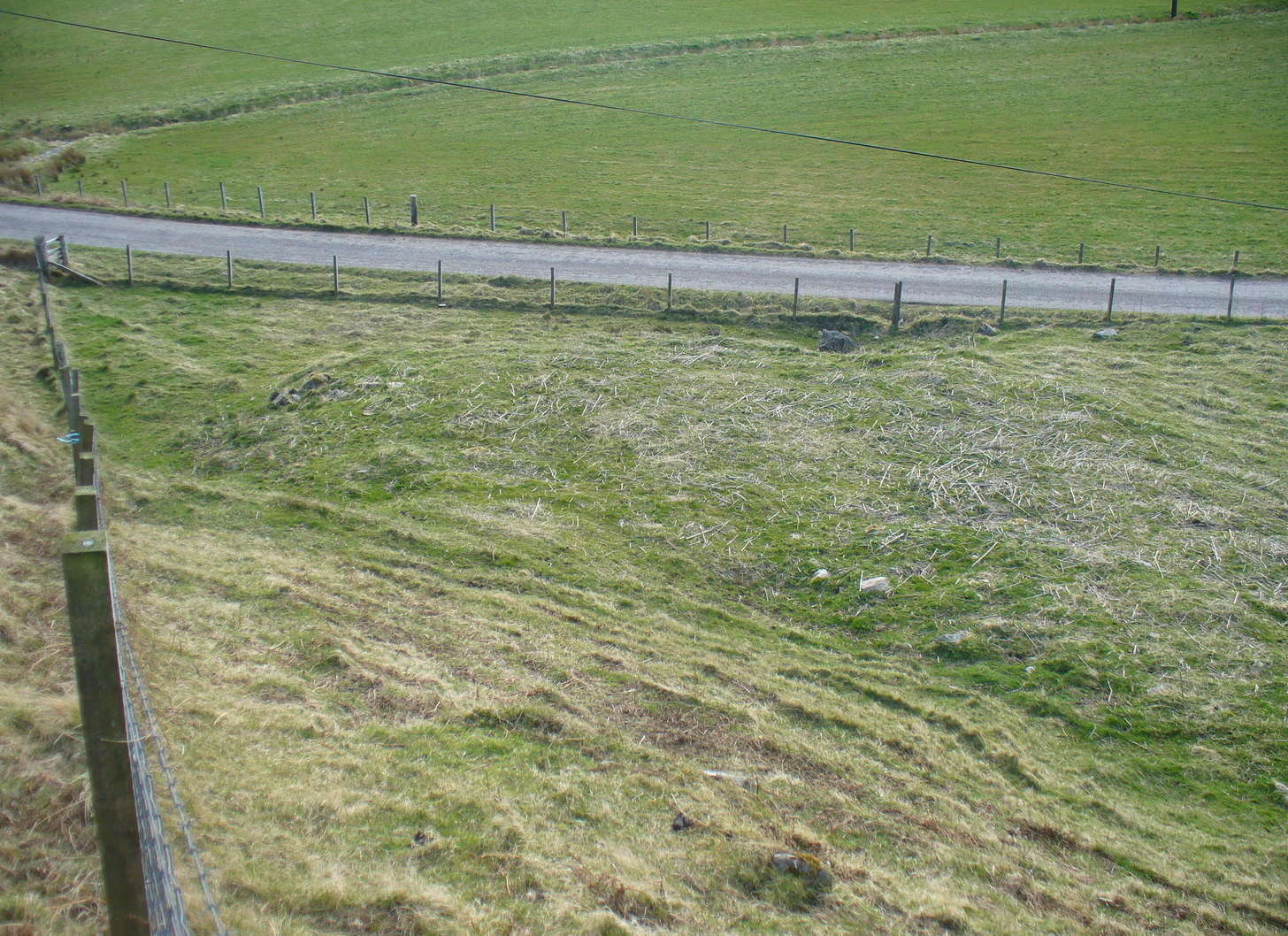 There’s not too much to look at here, apart from a very overgrown mass of loose stones seemingly piled up near the bottom of the sloping hillside. It was first noted when James Horsburgh (1870) explored the prehistoric sites of the region, but even then the site was mentioned with some brevity, telling simply: