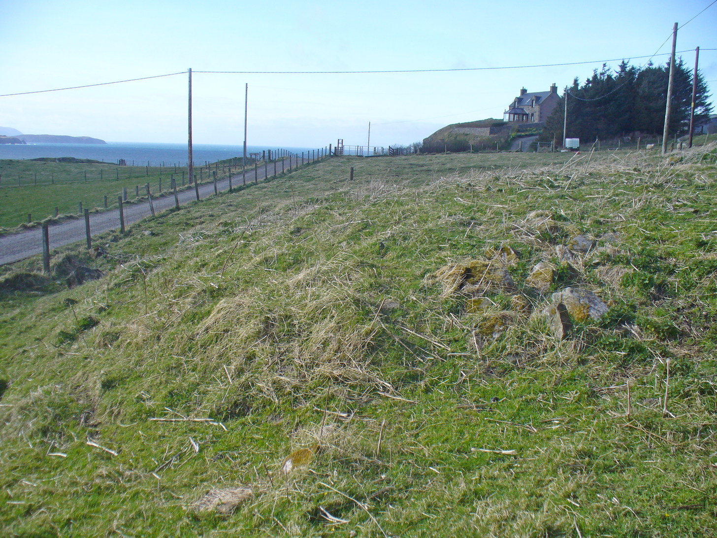 The site was included in Euan Mackie’s (2007) magnum opus, where he described the only remains left of this “possible broch” to be “the basal course of the outer wall…forming an arc about 9.0m long.”