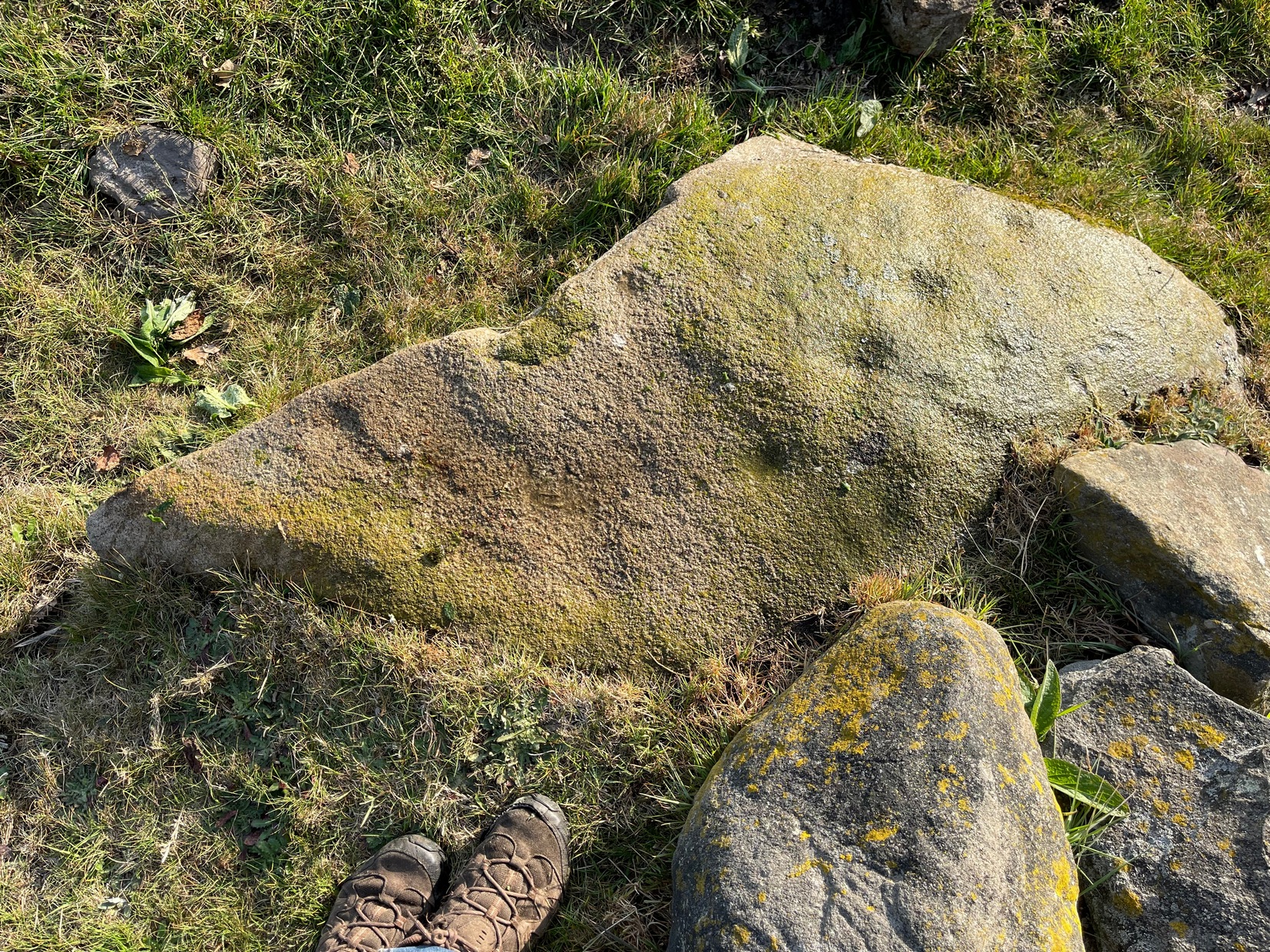 Both Tom and I are convinced that there’s more to this carving than is presently visible. The rock is covered in deeply compacted soil and it would require a lot of work to uncover the rest of it. A job for the future maybe…..