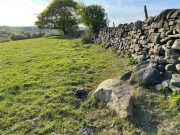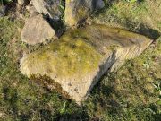 A small, seemingly broken cup-marked stone that may have once been part of a prehistoric tomb, found itself being included in an old wall at some time in the not-too-distant past: in the south-facing wall of the cricket ground at the top end of town. No one seemed to know it was there until it was noticed in the 1950s by a local man who brought it to the attention of Sidney Jackson (1958), editor of the local Bradford archaeology mag at the time. Jackson visited the site and thankfully did a sketch of what it looked like, before it was removed at a later date. He wrote: