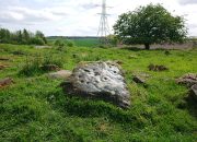 Go west out of Perth city centre, along Longcauseway which runs straight into Jeanfield Road, then (keep your eyes peeled) turn left and go along Burghmuir Road to the end where, at the roundabout, go straight across. 100 yards along, a dead straight path starts on the left-side of the road. Walk 400 yards along here, cross the road, keep straight on the path (called Old Gallows Road) into the trees and a half-mile on you reach a large pylon on your right; but walk to your immediate left here and after 25 yards go through the gate on your left. In this field, 100 yards to the south you’ll see a tree inside a large low stone enclosure. You need to find the stone that’s the most northerly one in this enclosure walling.