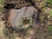 Just a stride or so away (north) from the dubious Tormain (2) cup-marking we find a much more likely prehistoric contender in front of us. It’s notably different from the others on the hill in that it possesses a very large wide and deep ‘cup mark’ which, if it was found in Ireland, would undoubtedly be classed as a bullaun stone. That was the first thing I exclaimed to myself when I clapped eyes on it! A bullaun can be a man-made or natural hollow or basin cut into outcropping rock, boulders or small portable stones and used for various pragmatic and ritual purposes – many with traditions and folklore attached. Sadly, no such folklore is remembered here.