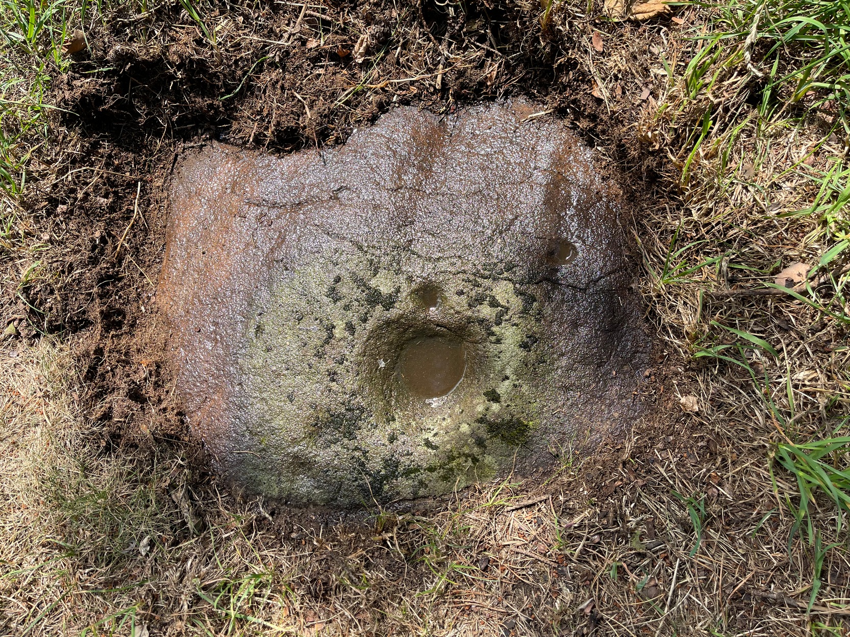 “The carvings on it consist of a bowl-shaped depression, 6 inches in diameter and 2 inches deep, and four cups near it varying in diameter from 1 to 1½ inches.”