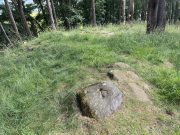 Despite this being included in archaeological surveys as prehistoric, I’m unsure regarding the archaic authenticity of this single cup-mark and wonder whether it was just the result of idle dabblings by one of the quarrymen here in the 19th century. The lack of erosion leads me to suspect this. It has the appearance of cup-marks that have been carved by students at several different places in Britain (South Yorkshire, West Yorkshire, Perthshire, Renfrewshire, etc) over the last forty years. I’m quite happy to be wrong though! When the Royal Commission (1929) survey mentioned “a single cup on one boulder,” this may have been the one they were referring to.