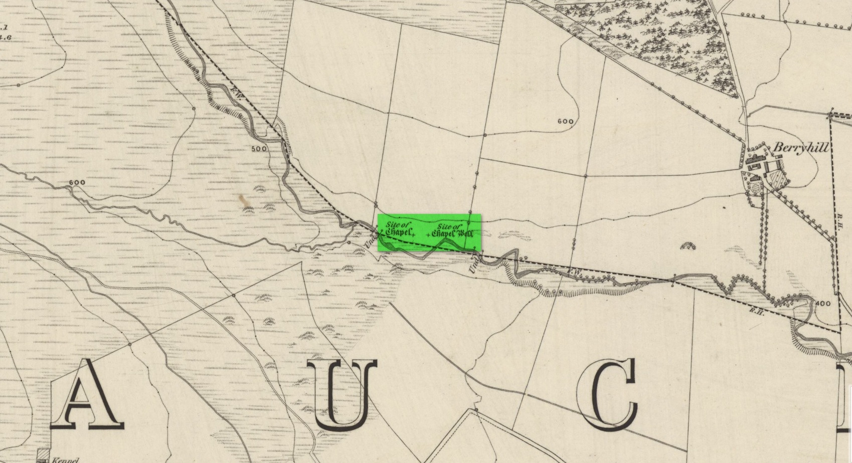 ‘On the south march of Berryhill Farm, in the same lands of Tullybeagles, there is the site of.. a chapel, where there was a burying-place, where human bones have been recently dug up; and, till of late, the people in the neighbourhood used, on the first Sabbath of May, to drink out of the Holy Well there. This sacred place is on the banks of the Ordie.’