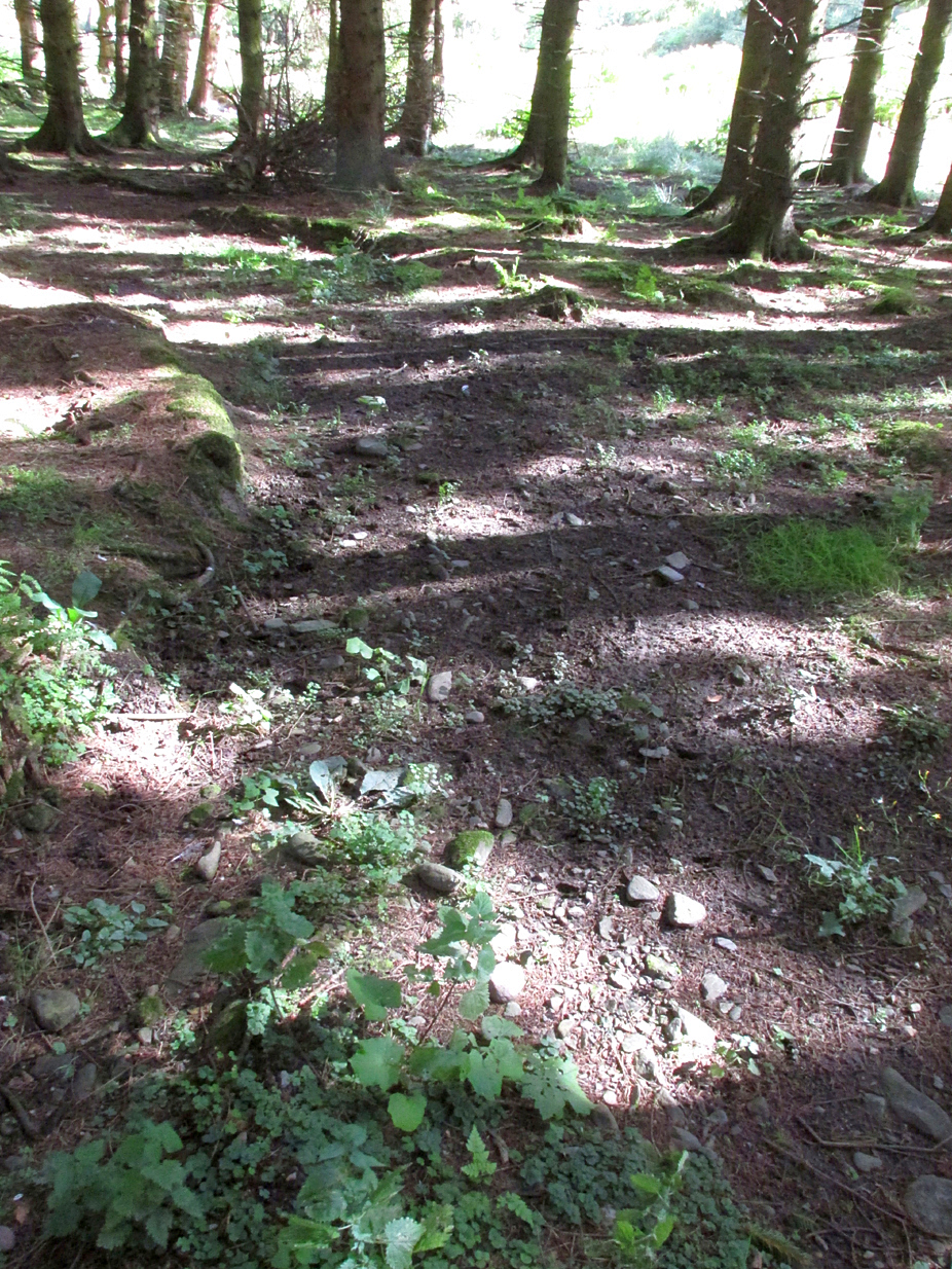 I could find no evidence of the culvert which discharges the waters of the Well into the Burn. What does seem to have been missed is the survival of part of the ancient sunken roadway or pilgrim path to the site, which is still clearly visible. The fact that it was visited by locals on the first Sabbath in May would point to it having originally been a Beltane well, and therefore of pre-Christian origin.