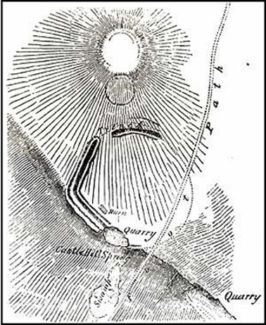 Intriguing to those of you who are fascinated by alignments between sites, or ‘leys’, as an impressive lines runs through this site. Starting at the little known Hirst Woods Circle and terminating at the giant Great Skirtful of Stones cairn, once passing over the now destroyed Weecher circle and the Brackenhall Green ring on its way.