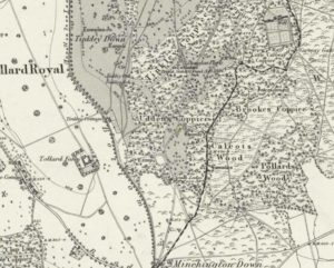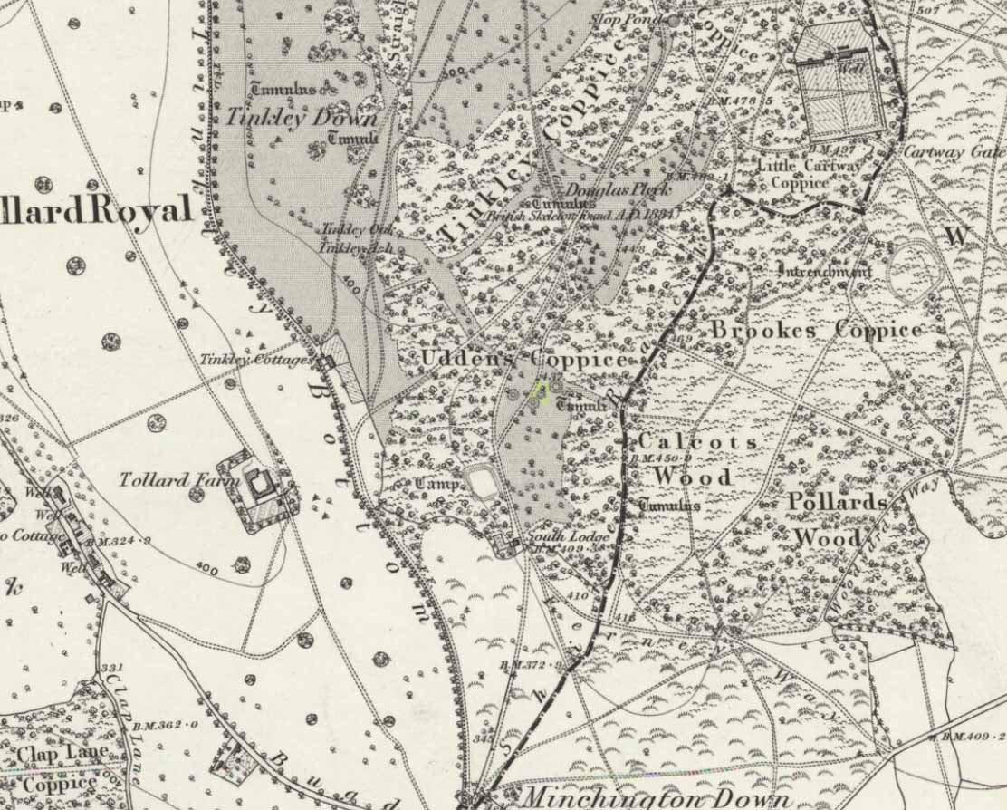 This long-lost burial mound was one in a large group of prehistoric tombs that were explored in the 19th century by the legendary antiquarian, General Pitt-Rivers. It had already been destroyed before the General came to live on his Rushmore estate in southern Wiltshire, but thankfully, his diligence as an inquirer prevailed and he was able to recover at least something of the old site. Shown on the 1889 OS-map of the area (despite already having been destroyed), in Pitt-River’s (1888) extensive writings he told how, in the scattered woodlands hereby, was
