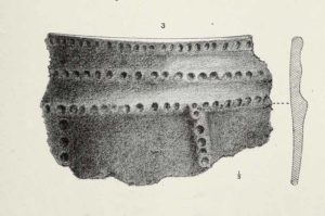 From a sketch that was made of the urn remnant, Pitt-Rivers told how “the character of its ornamentation” resembled that on another urn found in one of the nearby tumuli.